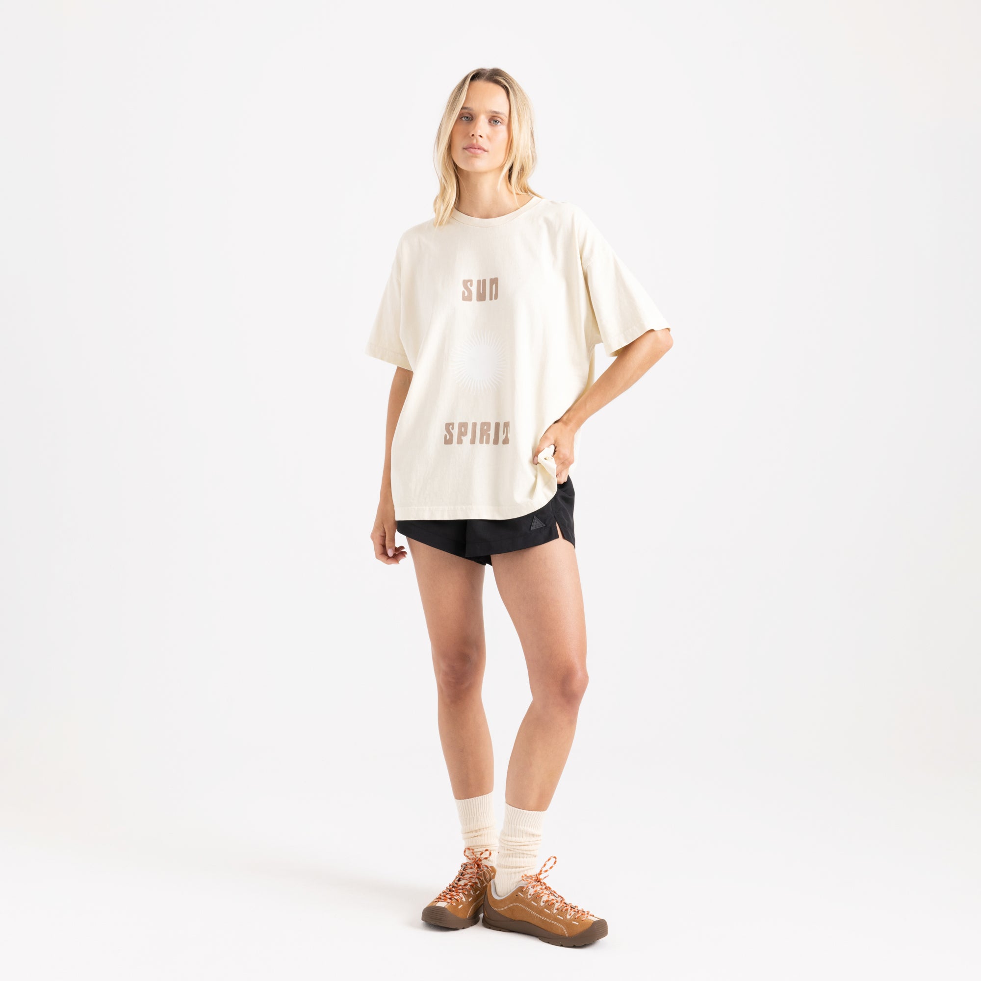 Perhaps our favorite and most worn tee is one that features the perfect oversized fit, vintage-inspired distressed graphics artwork, and a soft-ribbed crewneck. The Sun Oversized Tee promises it won't dissapoint.